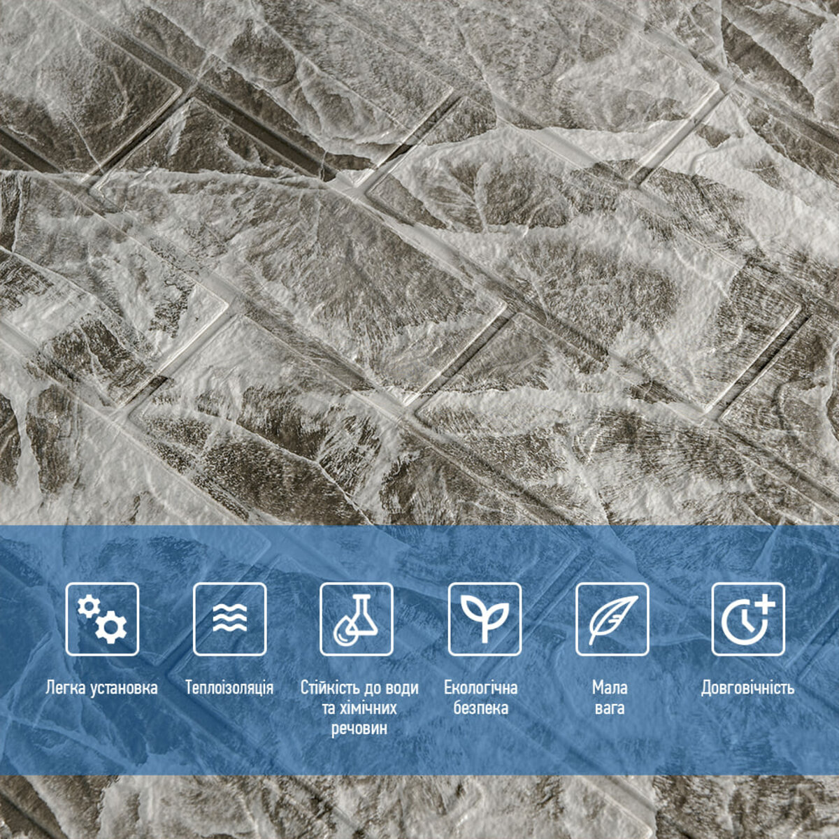Декоративная 3D панель самоклейка под кирпич Черный мрамор 700x770x3мм