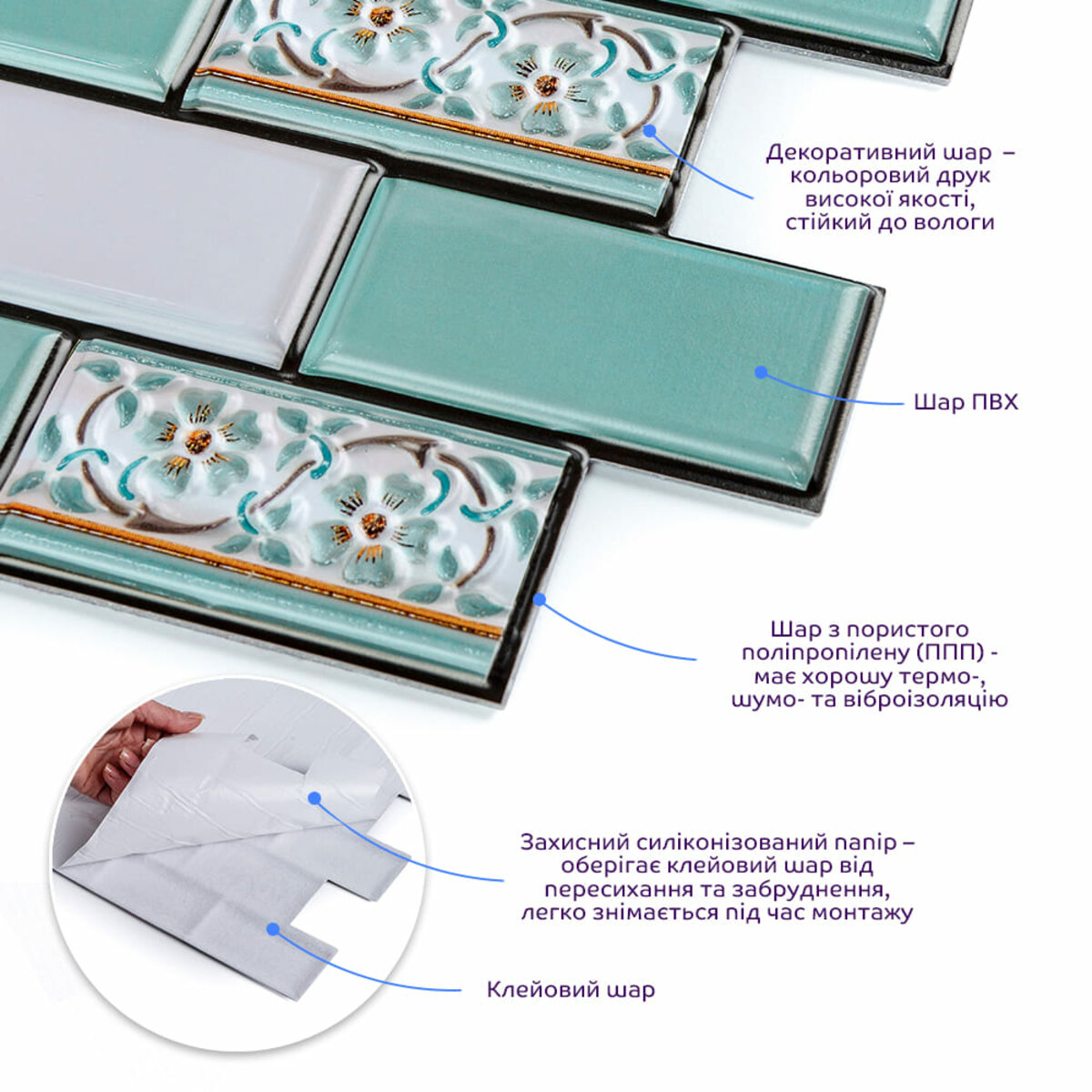 Декоративная ПВХ плитка на самоклейке мятная 300х300х5мм, цена за 1 шт. (СПП-505) SW-00001139