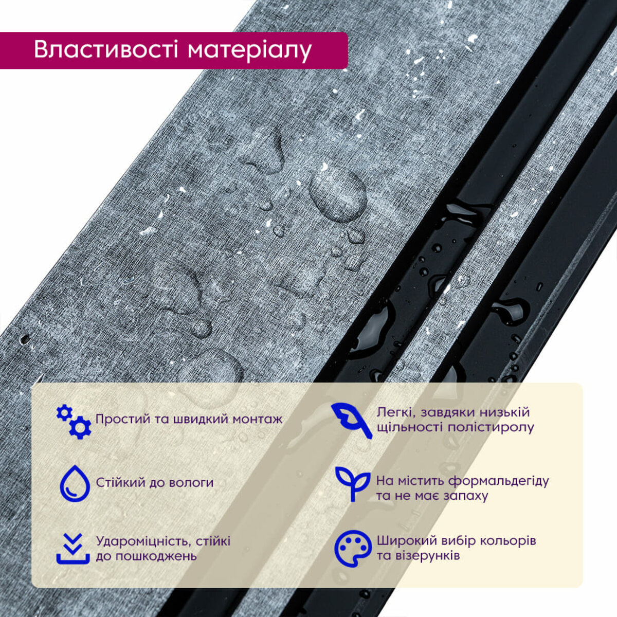 • Водостойкость: Защитное полимерное покрытие и основной слой из PS не поглощают влагу.