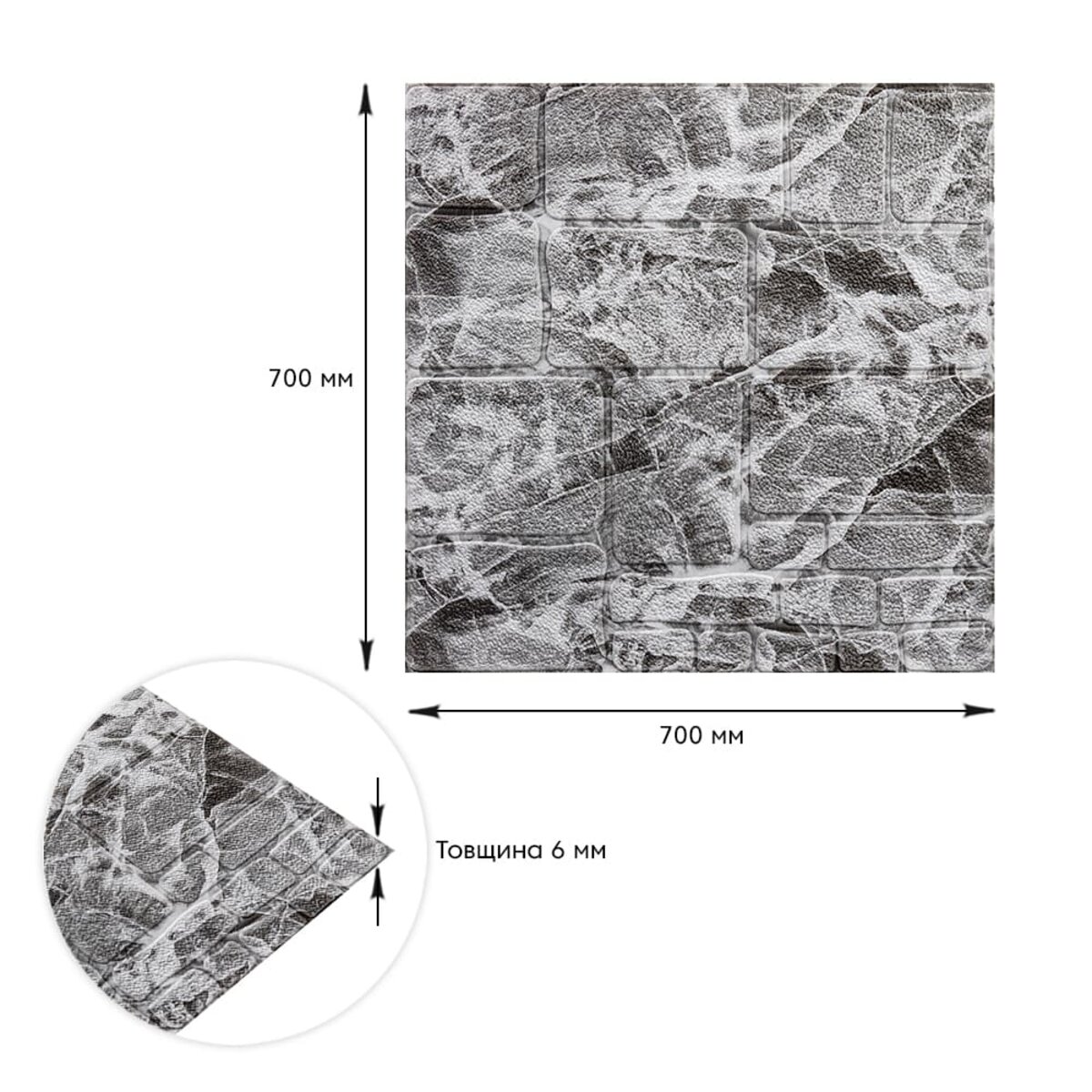 Самоклеящаяся декоративная 3D панель камень черно-белый мрамор 700х700х7мм