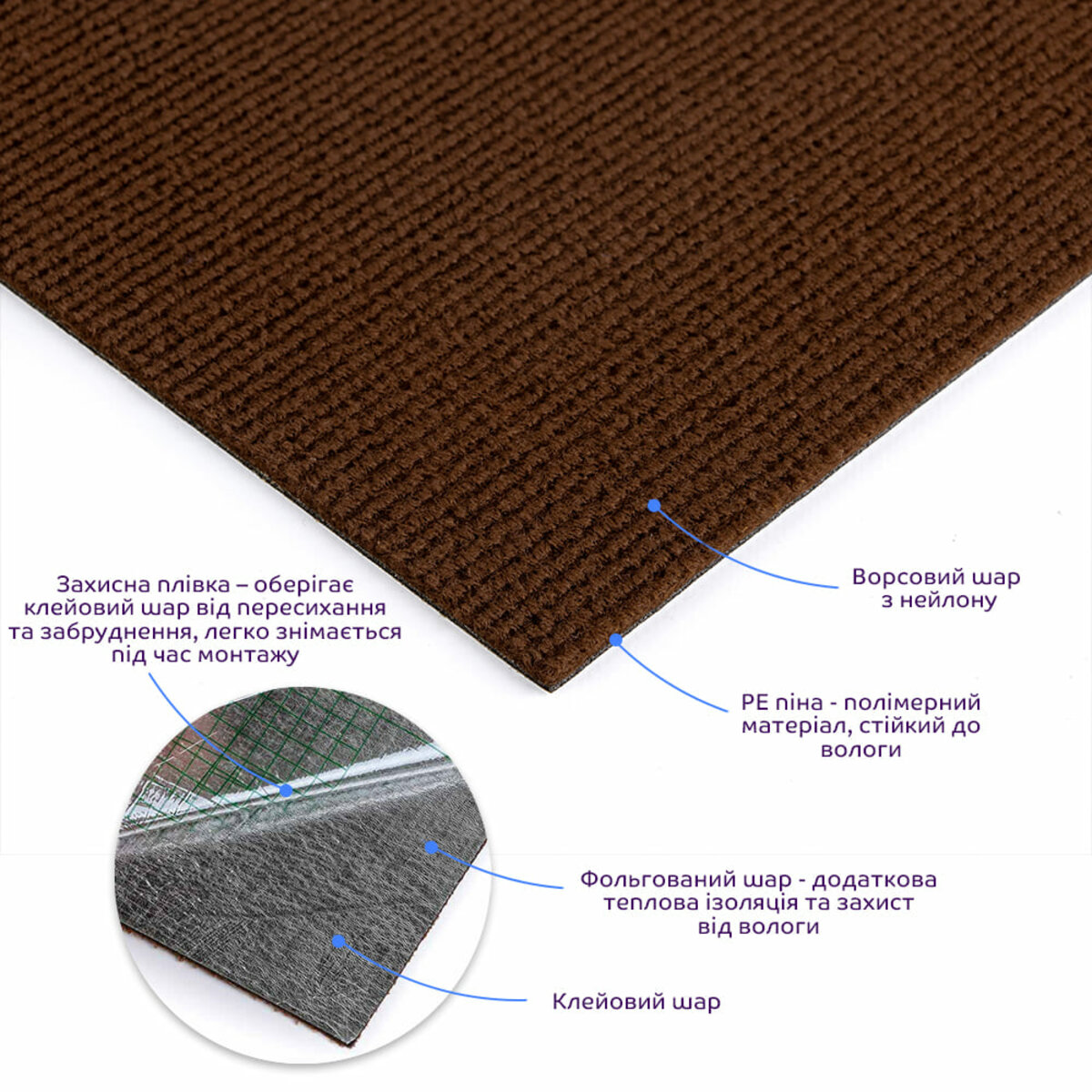 Самоклеящаяся плитка под ковролин темно-коричневая 300х300х4,5мм SW-00001422