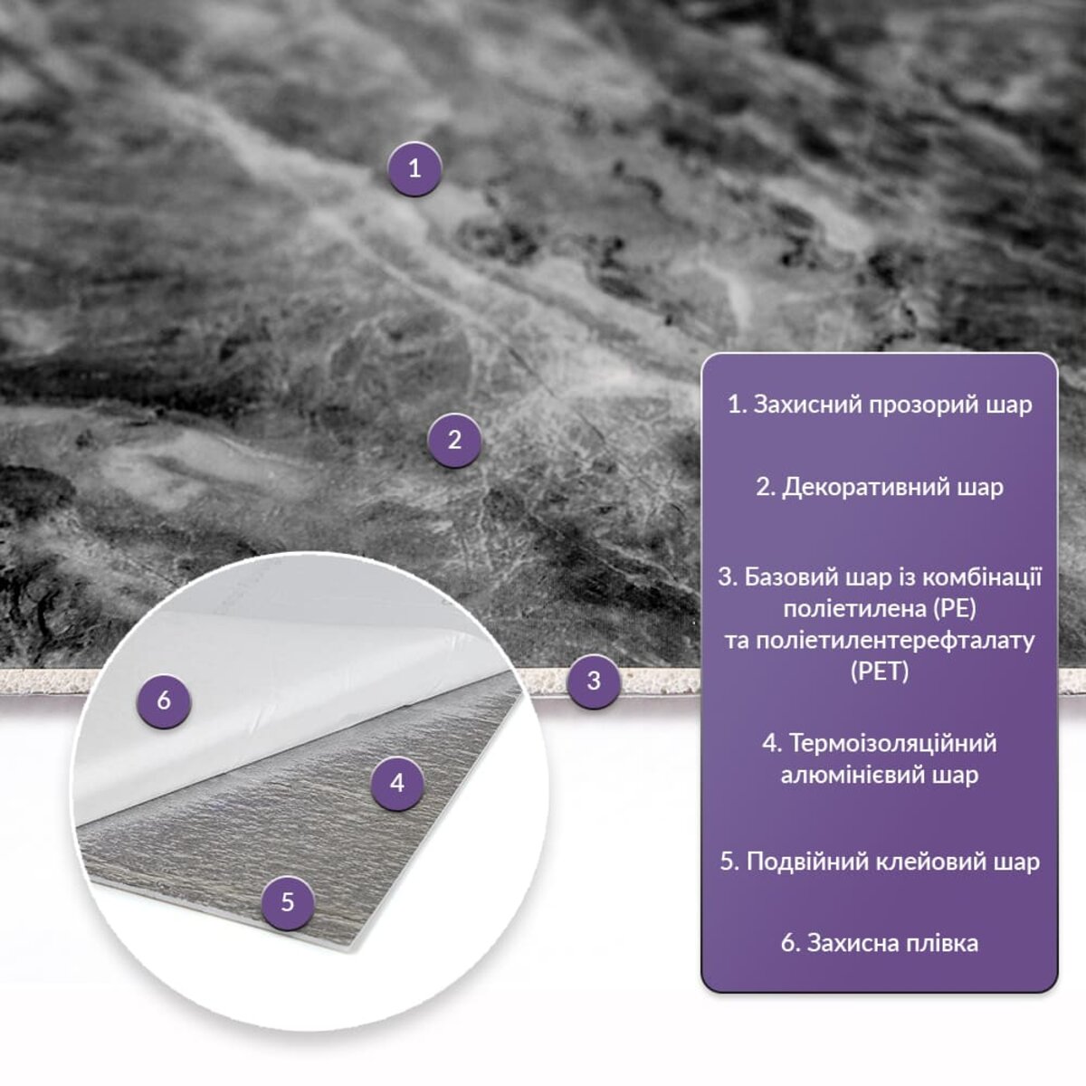 • Базовый слой из комбинации полиэтилена (PE) и полиэтилентерефталата (PET)