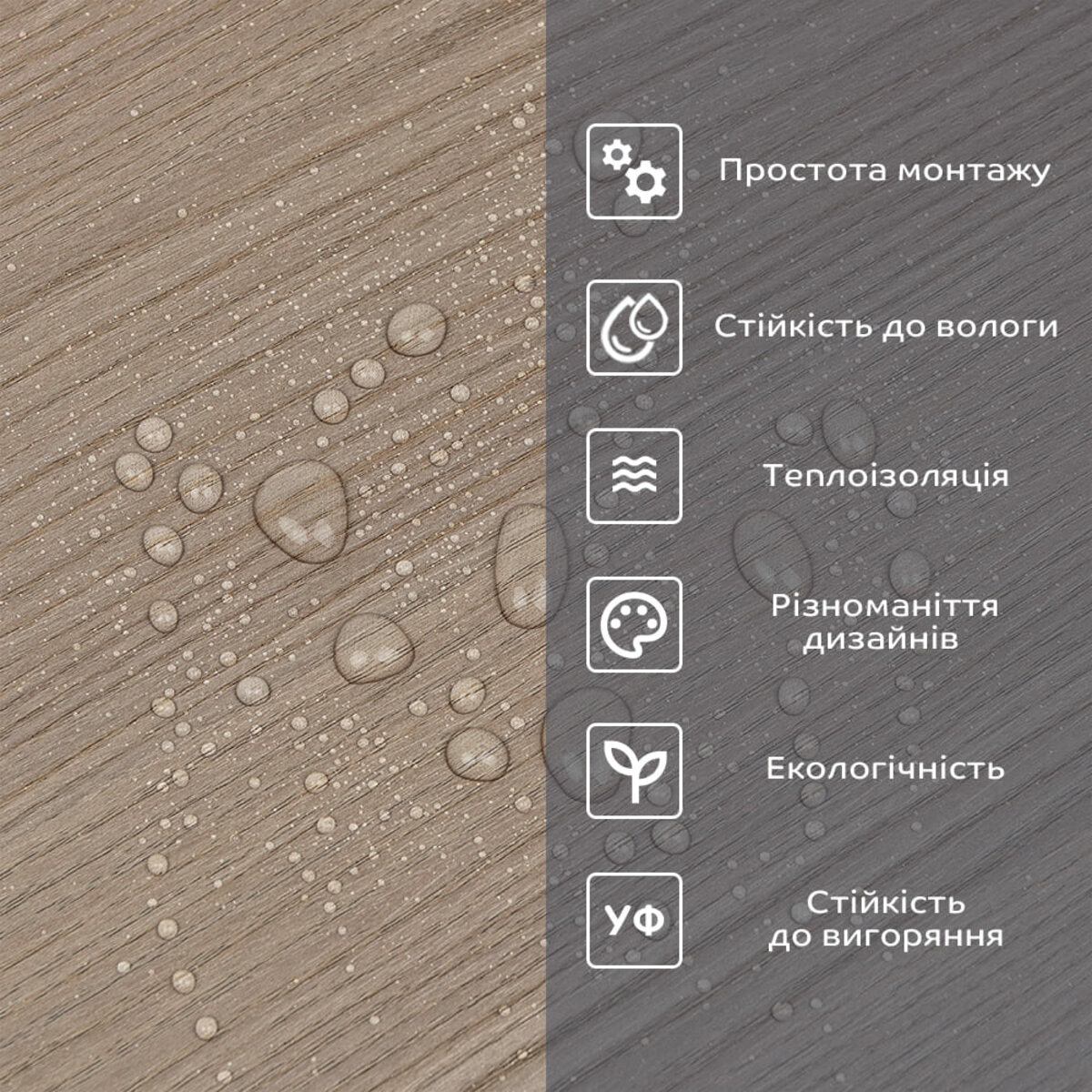 Фактура: ровная, с имитацией натуральных материалов. Поверхность глянцевая или слегка матовая.