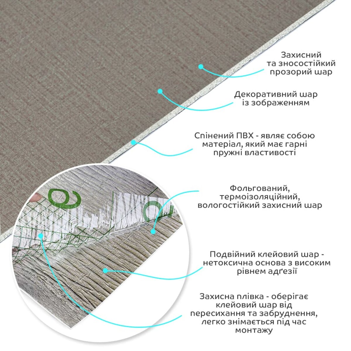 Декоративный слой: пленка с цветной печатью высокого разрешения, которая полностью имитирует фактуру природных материалов благодаря четкому и детализированному изображению.