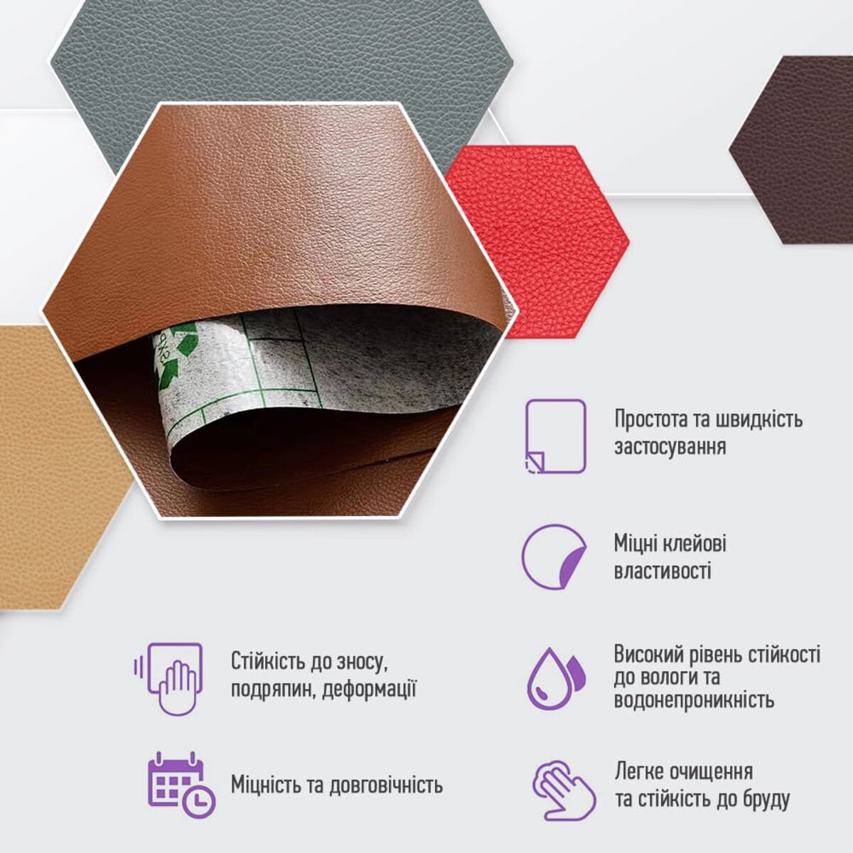 Самоклеящаяся экокожа в рулоне поможет легко и быстро устранить все дефекты изделий из натуральной кожи или ее аналогов. Больше не нужно беспокоиться об острых коготках домашних любимцев или следах от пепла сигареты, а быстро и самостоятельно отреставрировать мебель или салон автомобиля. Материал может использоваться либо в форме фигурных заплаток, либо в виде длинных полос для устранения дефектов больших поверхностей. Материал прочный, устойчив к износу, деформациям, влаге и загрязнениям, что делает его незаменимым и бюджетным помощником при реставрации предметов ежедневного пользования и увеличивает срок их службы.