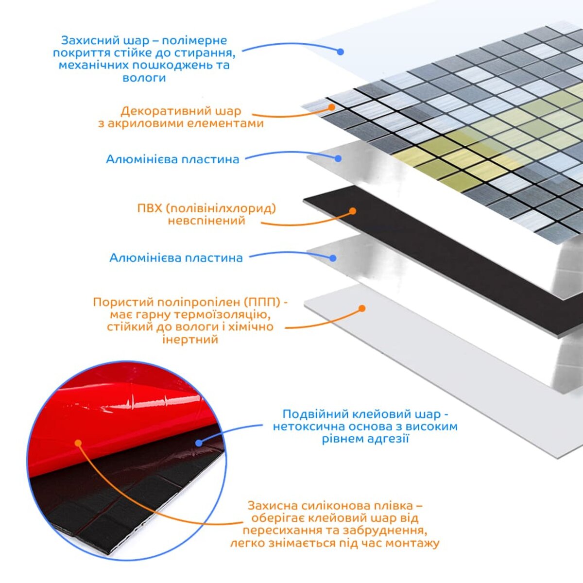 - Декоративные возможности: алюминиевая плитка доступна в различных цветах и дизайнах. Это позволяет вам выбрать плитку, которая лучше всего подойдет к интерьеру вашего помещения. Качественная альтернатива кафелю и керамической плитке.
