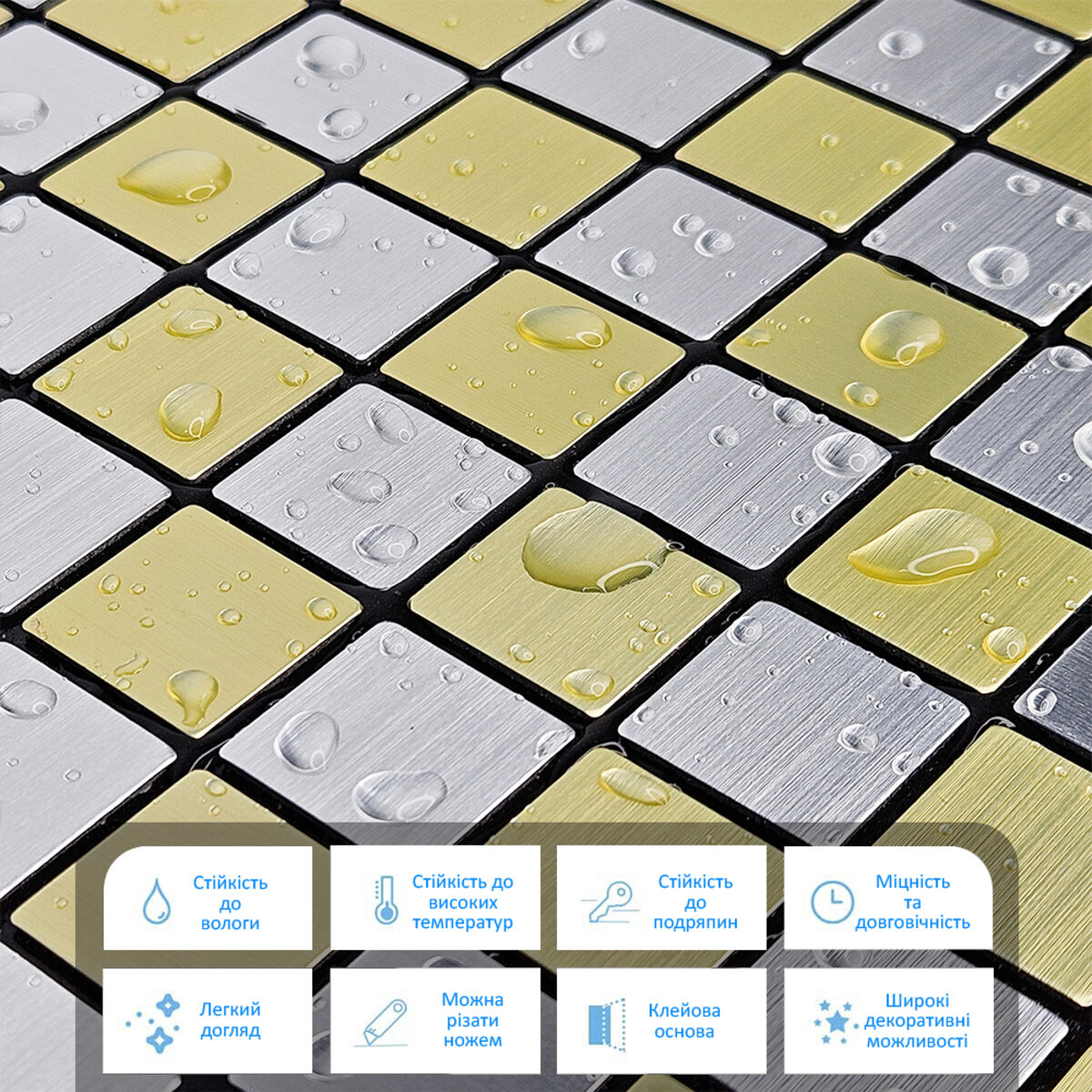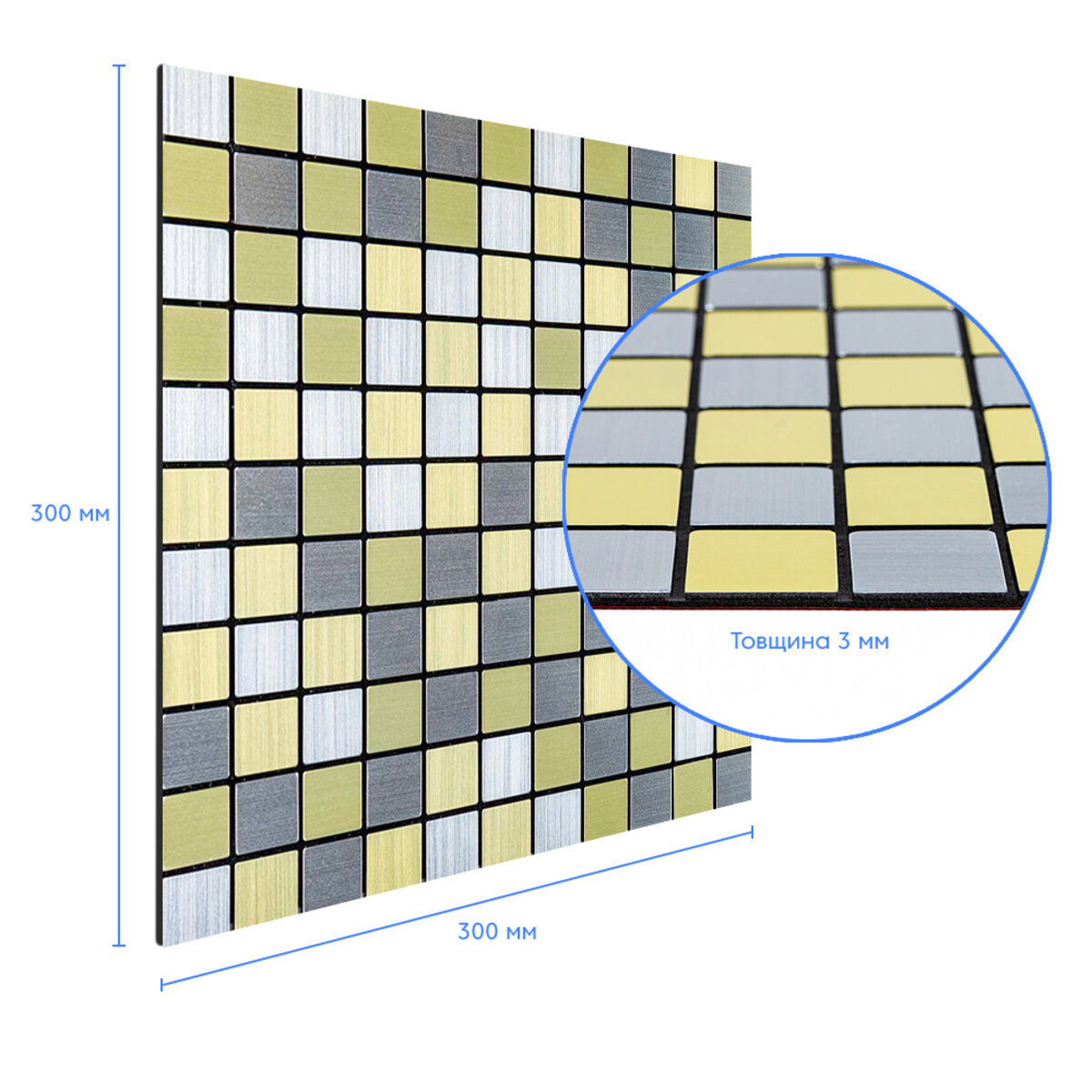 Самоклеющаяся алюминиевая плитка серебряная с золотом шахматы 300х300х3мм SW-00001827 (D)